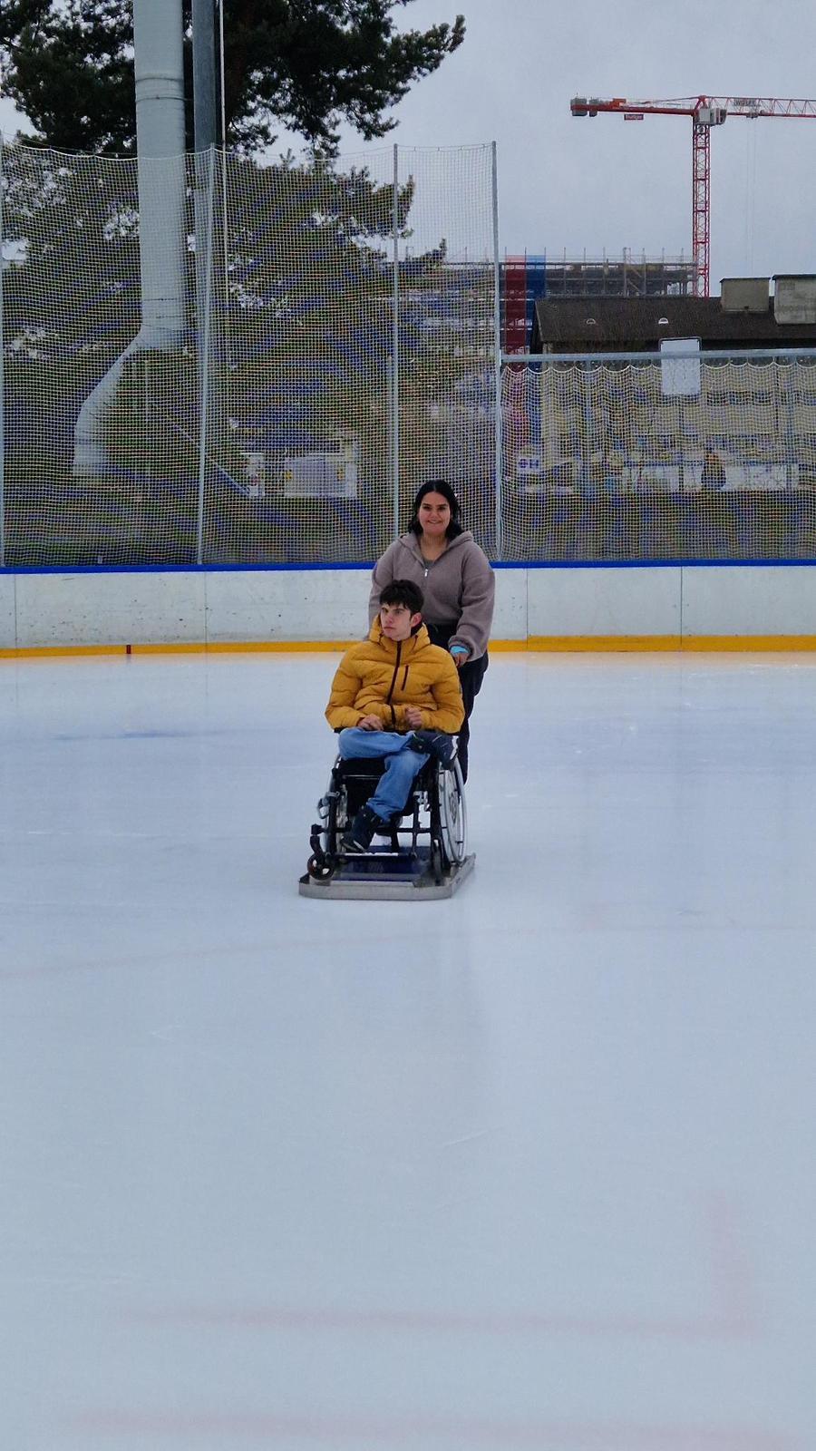 Am Dienstagnachmittag, dem 27.01.2026, machten wir mit einigen Jugendlichen aus der Klasse einen Ausflug auf das Eisfeld im Weyermannshaus. Für die Jugendlichen war es das erste Mal auf Schlittschuhen. Anfangs noch etwas wackelig auf den Beinen, wagten sie sich schon bald mutig mitten auf das Eisfeld. Auch mit dem Eisgleiter für den Rollstuhl fuhren wir elegant über das Eis. Als es Zeit wurde, zurück in die Schule zu fahren, wirkten alle glücklich, aber auch ein wenig müde. Den Mutigen gehört die Welt.
